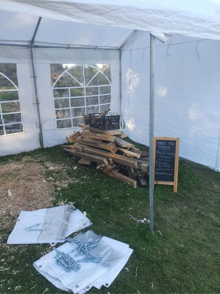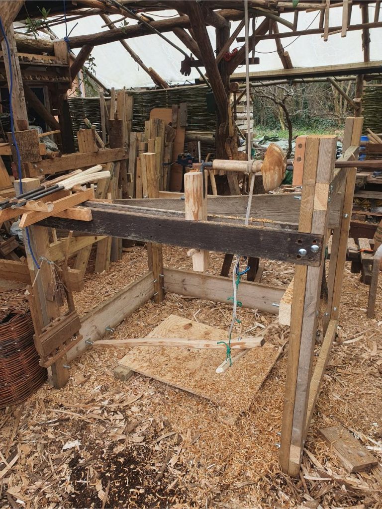In a couple of weeks the 2026 Bodger’s Ball will be held at the Avoncroft Museum just South of Bromsgrove. I’ll be bringing along a portable pole lathe I have designed mostly from easily accessible 2×4 wood which can be set up for cups, bowls or spindle turning, and has all the ergonomic features on my lathe in the workshop. This blog is a little more information about the design and my next steps for it. As such this blog is aimed at the existing and wannabe turners amongst you.