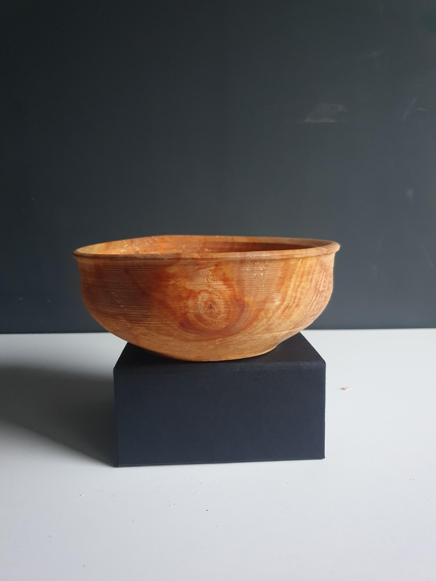 Viking wooden bowl with a bellied form, made from alder, where the shape is based on the bowl a bowl found in Dublin from the Viking era. Typically alder was used for this bowl, although this may be because it survives so well in boggy ground. Perfect for eating breakfast, soup or dessert from. Diameters vary between 6″ – 7″. Click on the wood-type to see an image of the actual bowl and for more information.