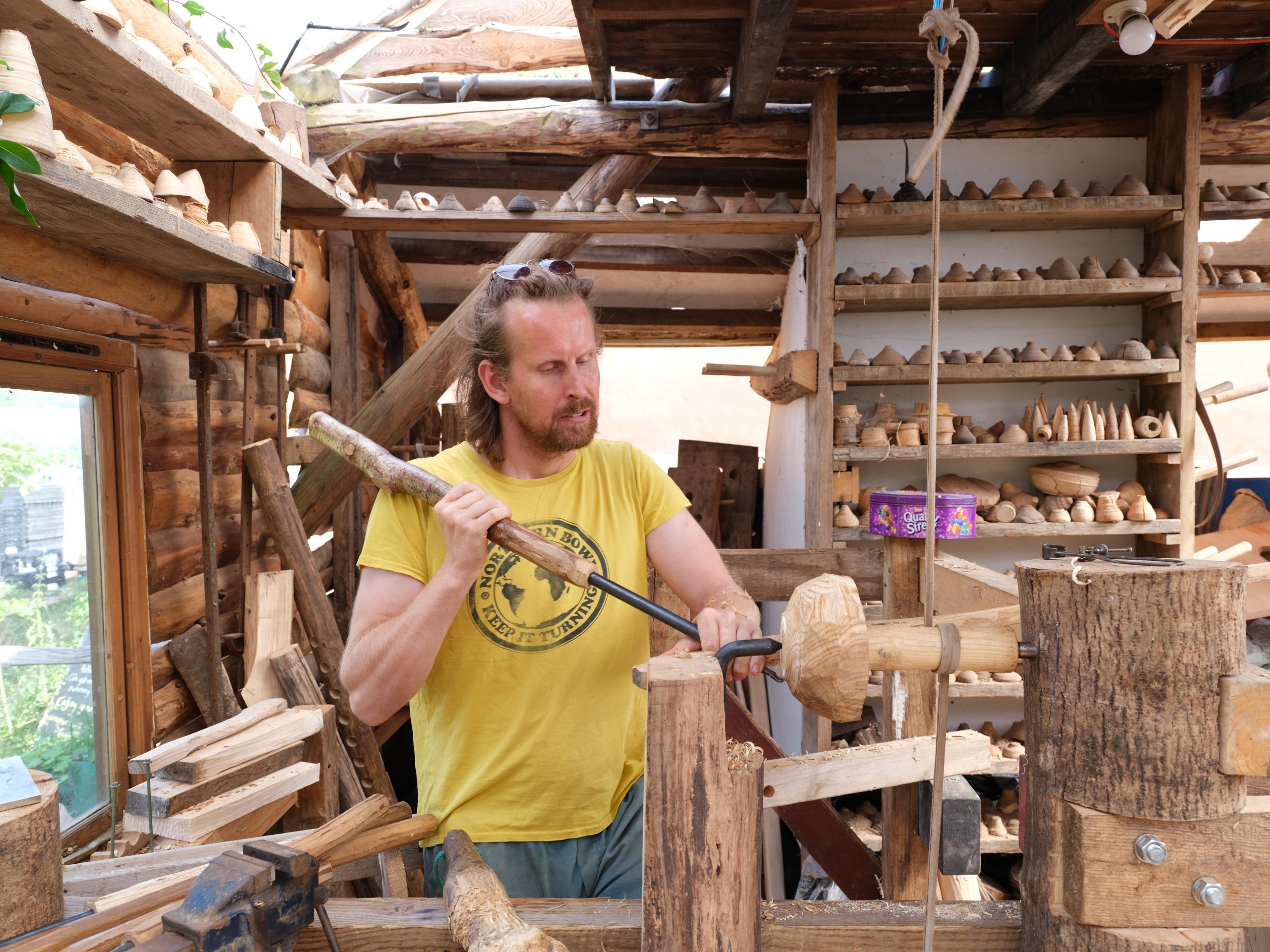 Perhaps the best answer is the simplest and for that (like most things) we need to go back to the beginning… At the age of 22 I road-tripped around the USA with school-friends (the film ‘Roadtrip’ had just come out). At one point we found ourselves in Dollywood (a theme park run by and devoted to Dolly Parton and all things Country), and there was an old man with a big old white beard demonstrating the pole lathe. Whilst my friends went on rollercoasters I just sat and watched, mesmorized and captivated, by both his movements and the contraption he was turning on. It still feels like yesterday. So, my first answer is: ‘I feel contentment around the pole lathe.’